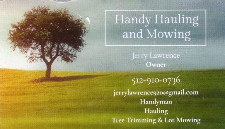 Jerry Lawrence, the owner of Handy Hauling, is a heavy equipment operator, land management operator, and skilled handyman, with 45 years of experience. His services include: mowing, trash hauling, lot clearing, tree trimming and removal, and home and ranch handyman services. Call or email Jerry for a free estimate.